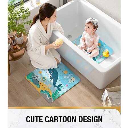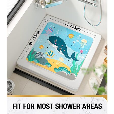 HITSLAM Square Shower Stall Mat Anti Slip, Quick Dry 21x21 Inch Bathtub Floor Mat for Kids in Whale or Submarine $8. Mermaid or Dolphin $9 FS Prime