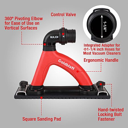 Goldblatt Dust Free Hand Sander, Dustless Drywall Vacuum Sander, with 6.5 ft Hose, Sanding Pad, Adapter. YMMV - Coupon Price $32.99