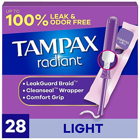 Tampax Radiant Tampons with LeakGuard Braid No Scent, Light Absorbency, 28 ct. Walgreens YMMV $2.79