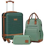 Model: Coolife Suitcase Set 3 Piece Luggage Set Carry On Travel Luggage TSA Lock Spinner Wheels Hardshell Lightweight Luggage Set(Dark Green, 3 piece set (BP/TB/20))