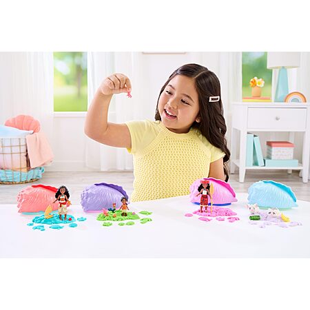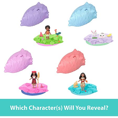 - Open the pretty seashell to reveal a Disney Moana doll or set of animal friends, each designed in 3.5-inch scale. Which character(s) will you find?