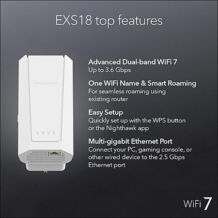 NETGEAR WiFi 7 Range Extender (EXS18) – BE3600 Dual-Band Wireless Internet Signal Range Extender $89.98