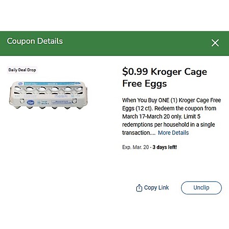 Kroger Ralphs Customer Appreciation Week: TUESDAY COUPON 0.99 Kroger Cage Free Eggs, Save 50% on Cake