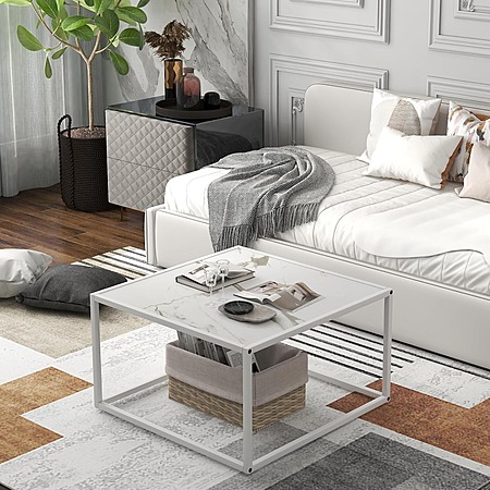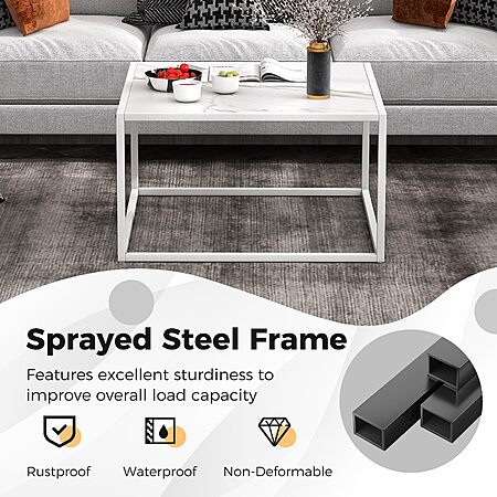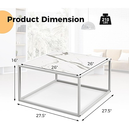 Giantex 27.5" Faux Marble Square Coffee Table with Steel Frame (White) $32.99 + Free Shipping w/ Prime