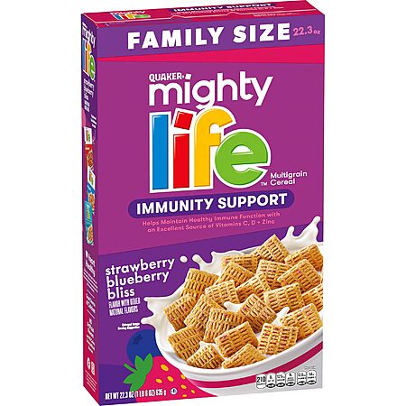 Quaker Mighty Life Multigrain Cereal, Strawberry Blueberry Bliss, Immunity Support, 22.3 Oz Family Size~$3.51 With S&S @ Amazon