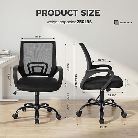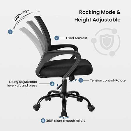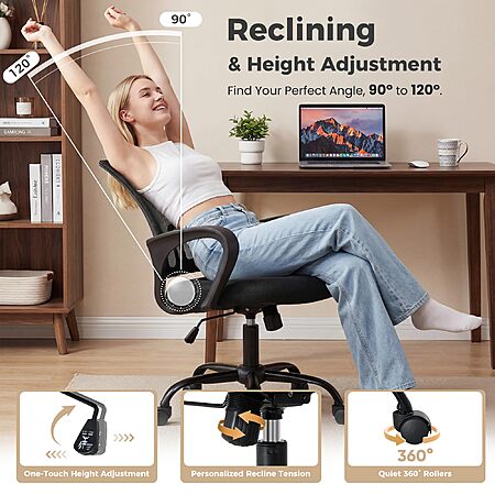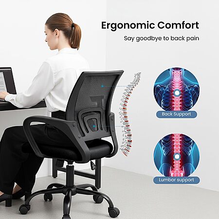 DUMOS Office Desk Chair - Ergonomic Mid Back with Lumbar Support & Rocking Mode - $29.98