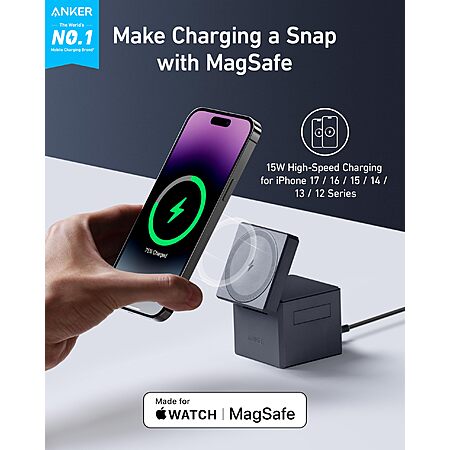Anker MagSafe Charger Stand, iPhone 16 Wireless Charger, 3-in-1 Cube with MagSafe, 15W Foldable Fast Charging Stand $83.64