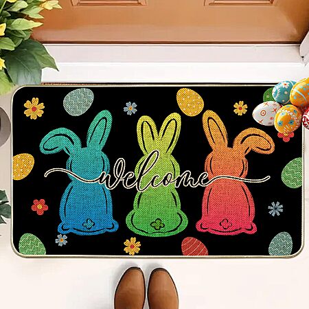 Welcome Easter Bunny Eggs Doormat 17"x29",Spring Welcome Peeps Door $9.01 clip Q FS PRIME (two styles to choose from)