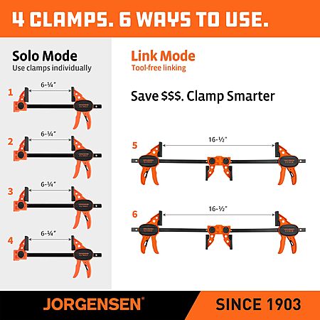 Amazon has a deal on this 4 pack of Jorgensen 6 inch clamps. Free delivery with Prime Membership. These are shipped and sold by Amazon.