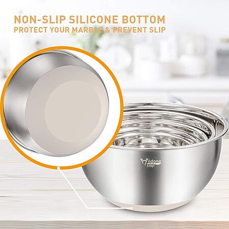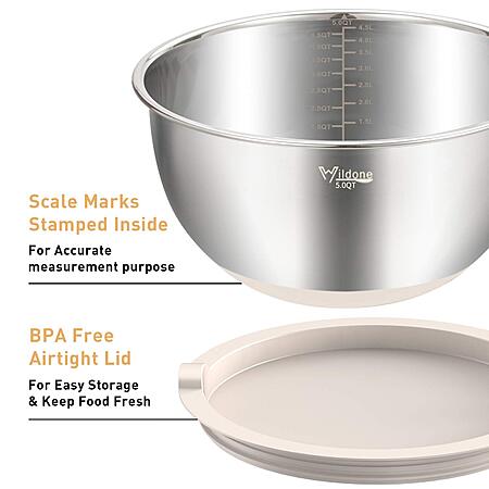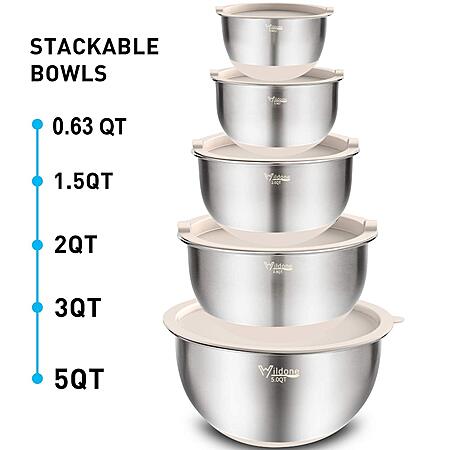 Wildone Mixing Bowls with Airtight Lids Set, 5PCS Stainless Steel Khaki Nesting Bowls for Kitchen,Non-Slip Bottoms, Size 5, 3, 2, 1.5, 0.63 QT, Great for Mixing & Serving $30.99
