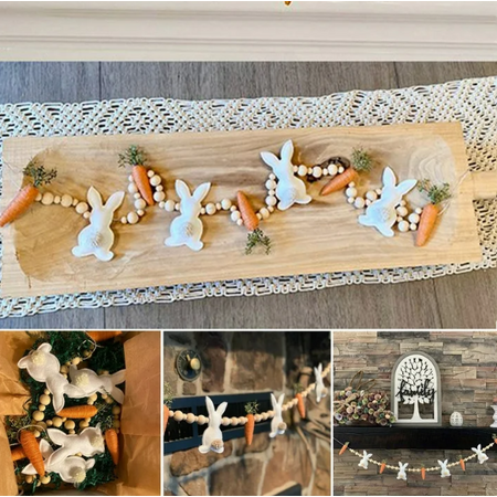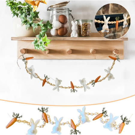 Easter Bunny Carrot Garland, Wooden Beads Rabbit Easter Banner Decorations $7.35
