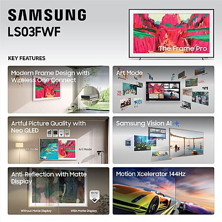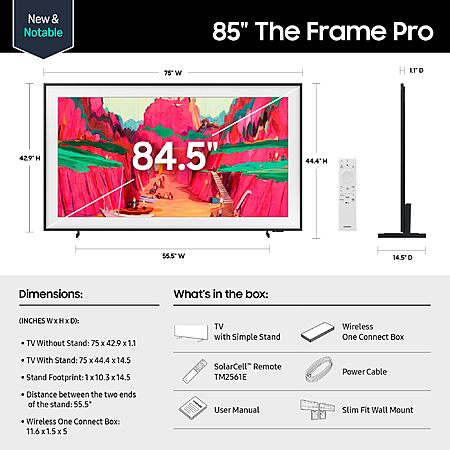 $2997.99: Samsung 85-Inch Class The Frame Pro LS03FW 4K Neo QLED Mini LED Smart TV (2025 Model) Slim Fit Wall Mount Modern Frame Design with Wireless One Connect, NQ4 AI Gen3 Proce