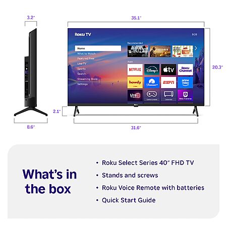 $129.99: Roku Smart TV - 40-Inch Select Series, 1080p Full HD TV - Roku TV with Voice Remote @Amazon