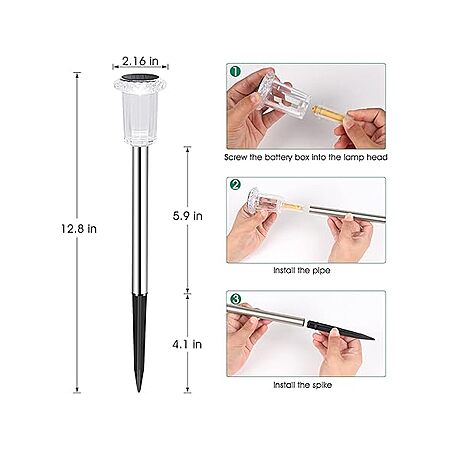 Solar Outdoor Lights, 10 Pack Waterproof Stainless Steel Solar Stake Lights, Cool White - $16.99 + free ship w/ Prime