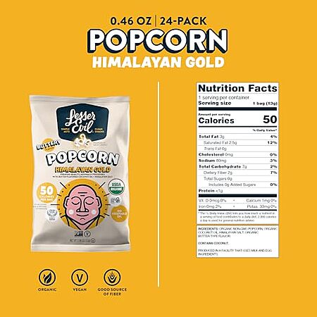 24-Pack 0.46-Oz LesserEvil Himalayan Gold Salt Organic Popcorn for $7.18 - $0.36 (5% Off) when you