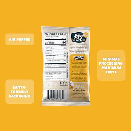 - 24 snack-size (0.46 oz) organic popcorn bags; ~50 calories each