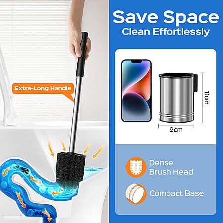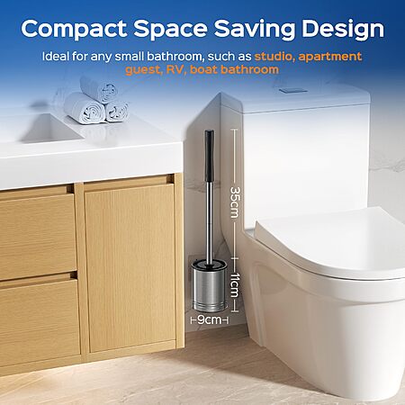HAMITOR Compact Toilet Bowl Brush Set (Silver)-4.02"L x 4.02"W x 5.91"H $5.99 at Amazon