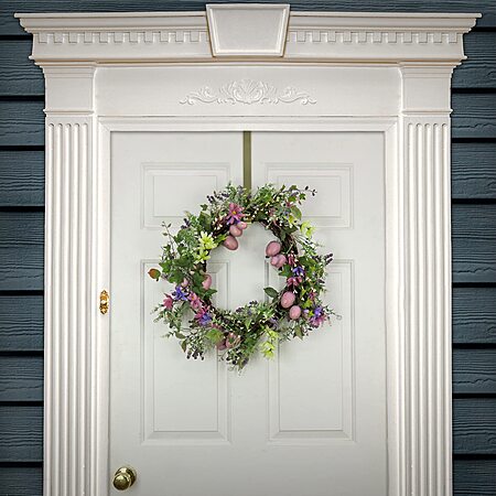 National Tree Company Artificial Spring Wreath, Woven Branch Base, Decorated with Purple Pastel Eggs, Pink Flowers, Leafy Greens, Easter Collection, 22 Inches $25.99 +FS w/Prime