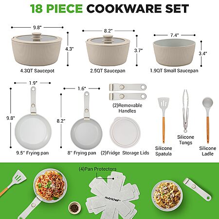 18-piece NutriChef Ceramic Cookware Set with Detachable Handles (Cream) $45.05 + Free Shipping