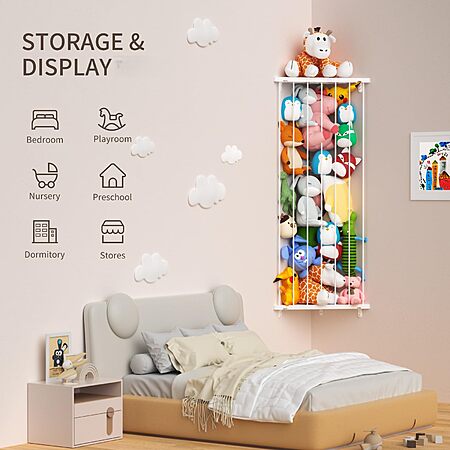 - Practical & Decorative: This stuffed animal storage wall hanging comes with vertical design. Elastic ropes designed to prevent plushies from falling like other cheap stuffed animal hammock. Keep the stuffed animals off the floor, and reclaim your space.
