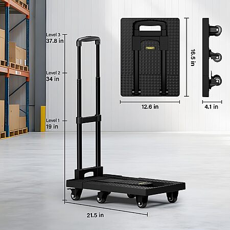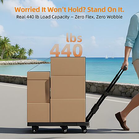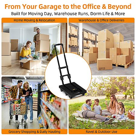 Amazon[amazon.com] has Troozy Folding Heavy Duty Dolly Cart w/ 6 Wheels & 2 Elastic Ropes (500 lb Capacity) for $25.23. Shipping is free w/ Prime or on $35+.