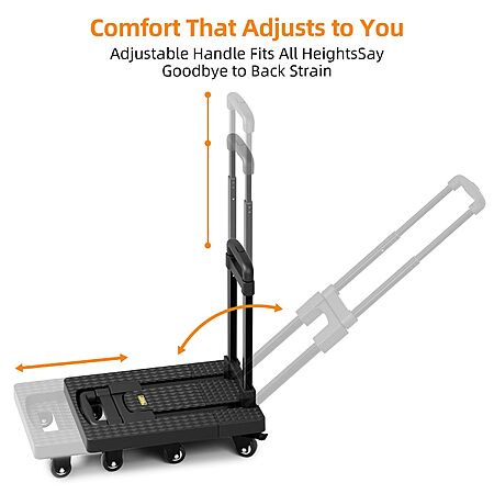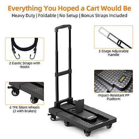 Model: Folding Hand Trucks, Heavy Duty Dolly Cart with 6 Wheels & 2 Elastic Ropes, Foldable & Ideal for Luggage, Travel, Moving, Shopping, Office Use, Hold Up to 500 LB, Easy to Store, Black