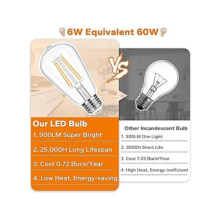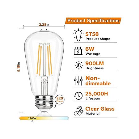 12-Pack Tobusa Vintage 90+ CRI Non-Dimmable ST58 2700K Warm White LED Filament Edison Bulbs $13.99 + Free Shipping w/ Prime
