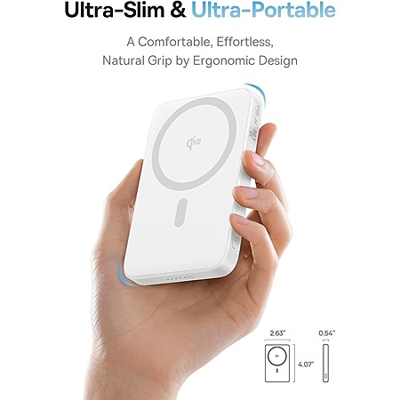 - Ultra-Compact & Lightweight: This 5000mAh battery bank is an ultra-slim, ultra-lightweight portable charger measuring only 0.54 inches thick and just 6 ounces. It doesn't block the camera lens when attached to your phone—you can barely feel it.