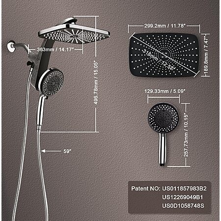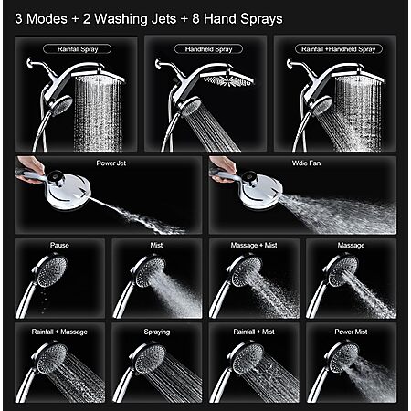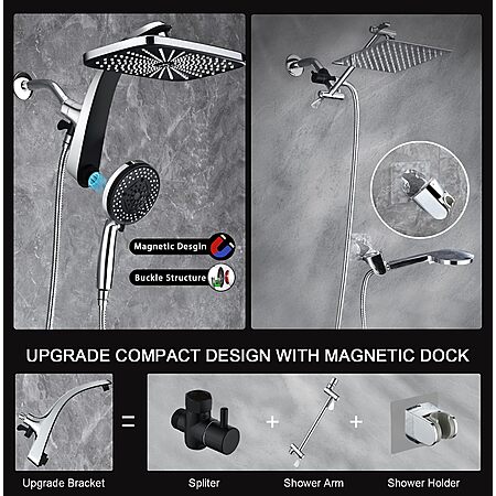 High Pressure Rain Shower Head: Upgrade Shower Heads with Handheld Spray Combo with Fixed Showerhead and 10 Sprays Handheld Shower Head, Detachable Shower head $47.46