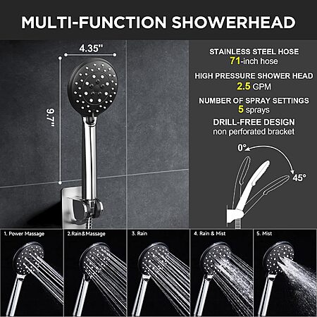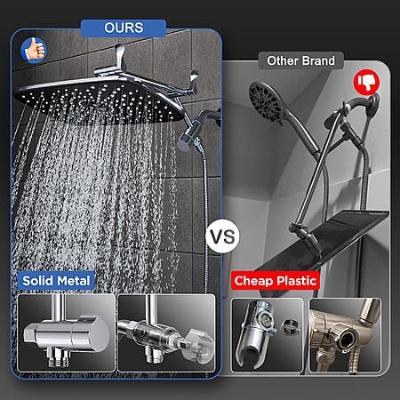 Veken 11.8" Rain Shower Head with Handheld, High Pressure Handheld Shower with Multi Spray Modes, Rainfall Combo with Metal Extension Arm, Detachable Dual Showerhead $39.99