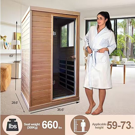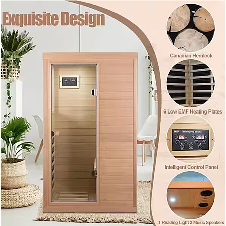 Spygo Moray 1-Person Indoor Hemlock Infrared Sauna with 6 Far-Infrared Carbon Heaters and Bluetooth Speakers $999.00