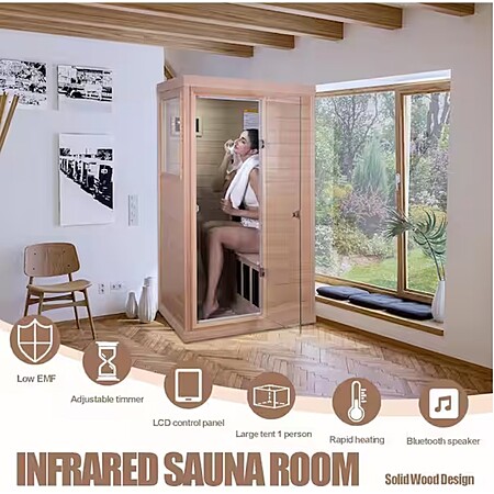 Spygo Moray 1-Person Indoor Hemlock Infrared Sauna with 6 Far-Infrared Carbon Heaters and Bluetooth Speakers $999