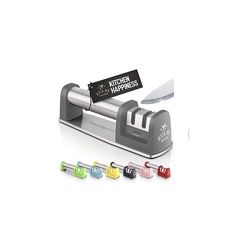 Zulay Kitchen - -Knife Sharpener for Straight and Serrated Knives Stainless Steel Ceramic and Tungsten - Gray $11.19 Bestbuy.com