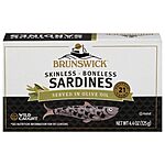 Brunswick Wild Caught Skinless and Boneless Sardines, Served in Olive Oil, 4.4 Ounce~$2.05 With S&S @ Amazon