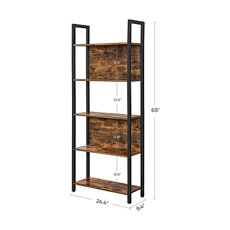 VASAGLE ALINRU Storage Shelf 5 Shelf Bookshelf Bookcase for Living Room Entryway Office Rustic Brown and Black $51.02