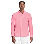 IZOD Mens Linen Button Down Short Sleeve Shirt - Holly Berry Pink Small (Free Shipping with Amazon Prime) $7.78