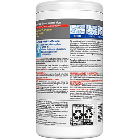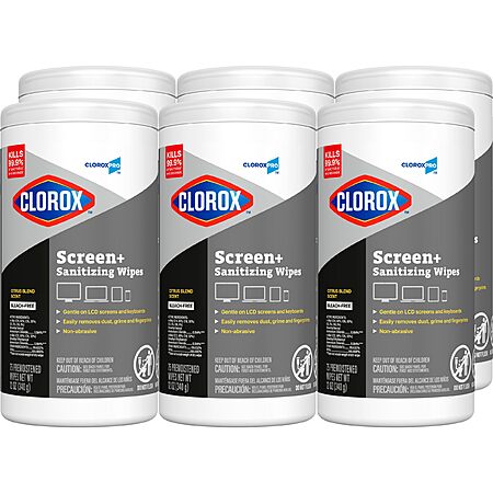 Features:- ELECTRONIC SANITIZING WIPES: Six canisters of 75 CloroxPro Clorox Screen+ Sanitizing Wipes, a safe way to clean and sanitize screens and more without damaging sensitive electronics (3)