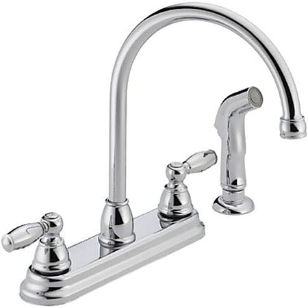 Amazon [amazon.com] has Peerless Claymore 2-Handle Kitchen Sink Faucet w/ Side Sprayer (Chrome) on sale for $30.29. Shipping is free w/ Prime or on orders $35+.