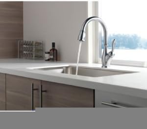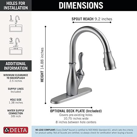 $127.59 | Delta Leland Brushed Nickel Kitchen Faucet, Arctic Stainless 9178-AR-DST at Amazon
