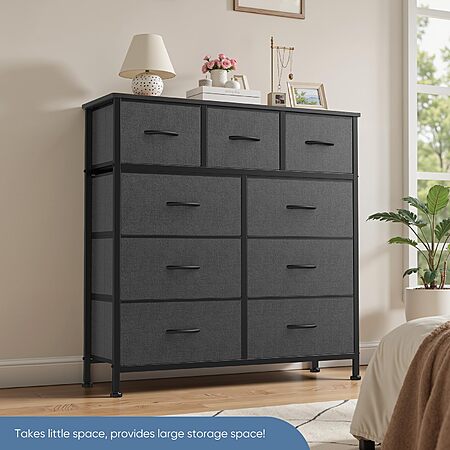 DUMOS 9 Drawer Dresser, Fabric Storage Organizer with Sturdy Metal Frame and Wooden Top, Modern Chest of Drawers for Bedroom Closet Entryway,Grey $39 FS AMAZON