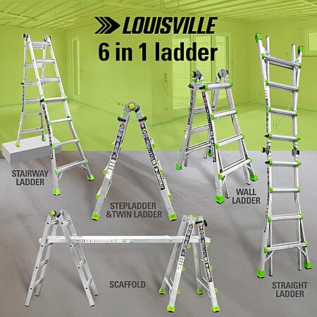 Louisville 18-Ft Reach Aluminum Multipurpose Ladder, Type IA, 300-pound Load Capacity, L-2099-18 $199.00 at Walmart & Amazon