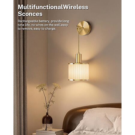 Model: SAIMAND Battery Operated Wall Sconce Set of 2, Wireless Rechargeable Wall Lights with Remote Control, 9 Colors Dimmable LED Lamps, Modern Cordless Sconces for Bedroom Living Room Hallway(Gold)