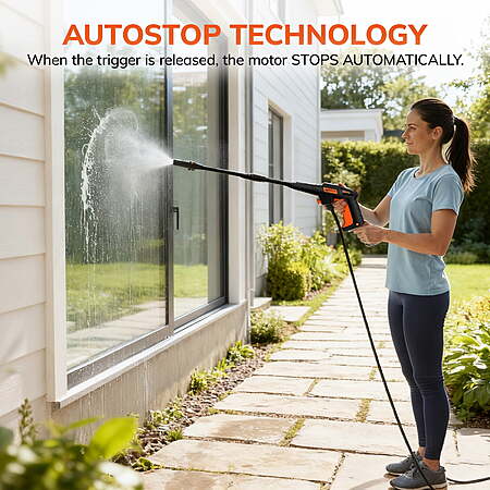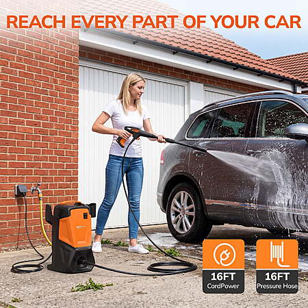 Enjoy greater freedom of movement with an 18 ft power cord and 18 ft high-pressure hose, making it easy to clean large spaces like decks, patios, and driveways without constantly repositioning.
