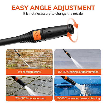 🎯 Precision Adjustable Nozzle (0°–120°)