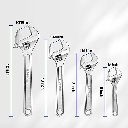 [AC] $21.24: WORKPRO 4-piece Adjustable Wrench Set, Forged, Heat Treated, Chrome-plated (6-inch, 8-inch, 10-inch, 12-inch)