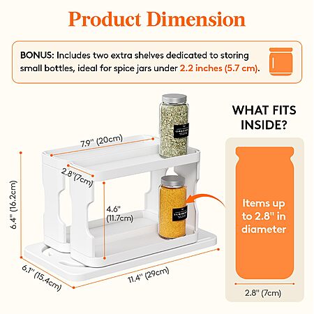 Lifewit Spice Rack Organizer w/ Double 3-Tier Adjustable Shelves (White) $9.99 + Free Shipping w/ Prime or on $35+