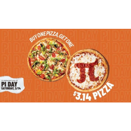 Blaze Pizza will honor Pi Day with a BOGO offer. On March 14, guests can purchase one 11-inch pizza and get a second 11-inch pizza of equal or lesser value for just $3.14 at participating Blaze Pizza locations across North America, according to a press release