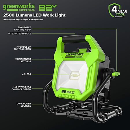 Greenworks 82V (AC/DC) 2500-Lumen LED Work Light, Battery and Charger Not Included $35.29