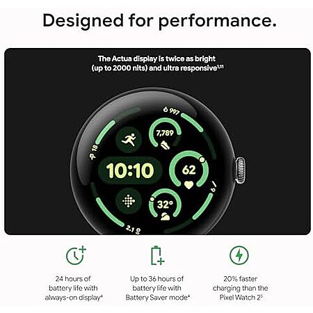 $179.99 | 45mm Google Pixel Watch 3 Wi-Fi Aluminum Smartwatch at Amazon