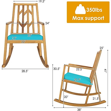 Tangkula Solid Acacia Wood Patio Rocking Chair w/ High-Density Cushion (Turquoise, White, Red) $64 + Free Shipping